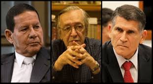 Como professor de filosofia pode ser até um bom orador, com conhecimentos de teorias filosóficas e argumentativas, mas como conselheiro politico esta mais pra um astrólogo. Usando filho do presidente criou mal estar no relacionamento de Bolsonaro com alguns militares, dentre eles o abalizado General vice-presidente da república Hamilton Mourão .” Os militares vêm sendo alvo frequente das críticas do escritor, em especial Santos Cruz e o vice-presidente Hamilton Mourão. ,Constantemente tem publicado uma série de frases no seu Twitter disparando contra os militares, chamando-os e mão de obra ociosa” e que não são “santos heróis da pátria que eles mesmos pintam”. General Santos Cruz no mesmo tom não poupou elogios ao filosofo dizendo ;que !ele é um desocupado e esquizofrênico”.