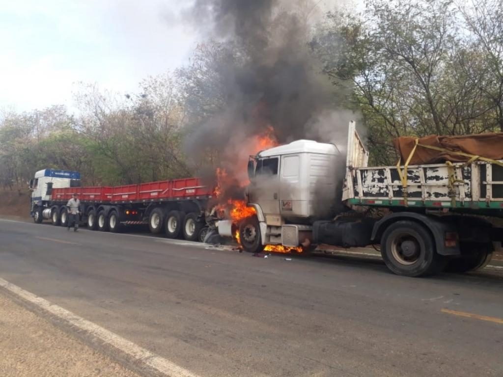 Com o impacto da batida, o cavalo mecânico que estava atrás, puxando uma carreta, pegou fogo e as chamas atingiram a cabine e o carro ocupado pelo casal, inicialmente identificado como Cláudio Chaves e Patrícia, ambos moradores de Sete Lagoas.