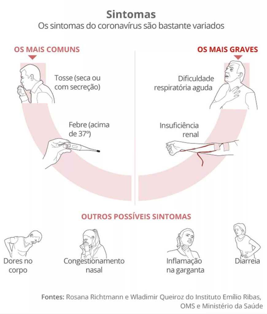 A doença causada pelo novo coronavírus recebeu o nome de Covid-19. Ele foi descoberto no final de dezembro de 2019, na China. A primeira morte foi registrada no dia 9 de janeiro.