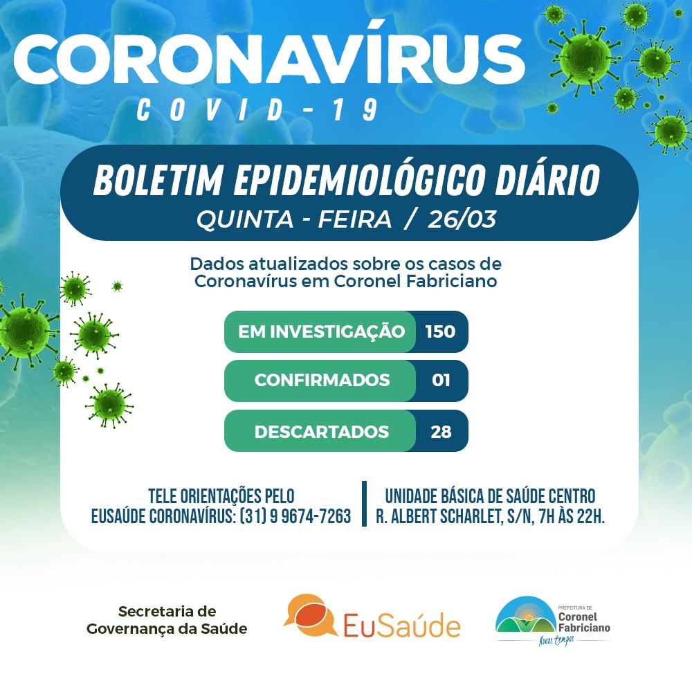 Saúde BOLETIM EPIDEMIOLÓGICO 26/3/2020 – CORONAVÍRUS EM FABRICIANO 6 anos agoAdd Commentby adminab5.514 Views1 min read6 anos ago Written by adminab FacebookTwitterGoogle+PinterestLinkedInRedditStumbleUponvKontakteEmailWhatsApp