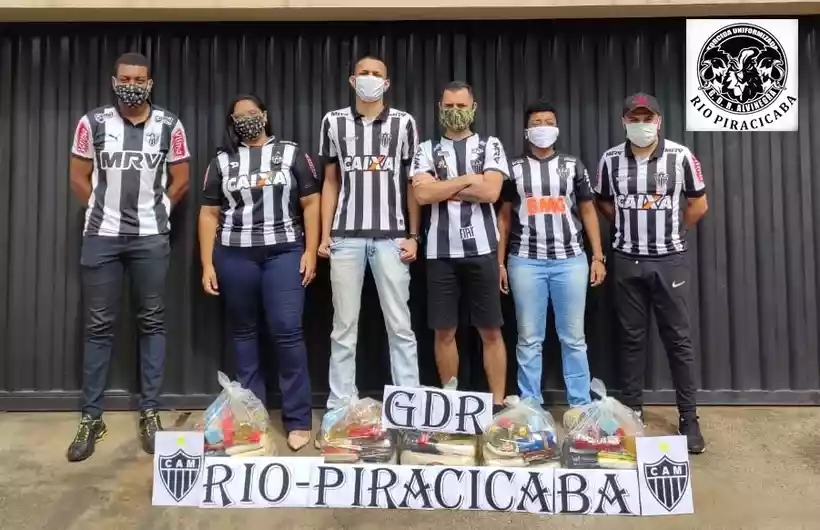 No mês passado foram arrecadadas e distribuídas outras 35 cestas com alimentos, depois de uma campanha pelas redes sociais. Houve ajuda até de torcedores do galo residentes em outros países, contou o diretor da torcida, o engenheiro Jadir Júnior, o Piloto, responsável pela bateria que anima os jogos do time.Continua depois da publicidade