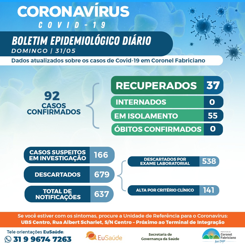 A Prefeitura disponibilizou o Tele Orientação – EuSaúde, com atendimento 24 horas por dia via WhatsApp pelo telefone (31) 99674-7263.