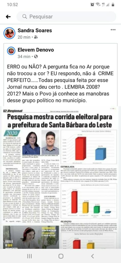 Internautas se revoltam com Resultado de Pesquisa em Santa Barbara do Leste