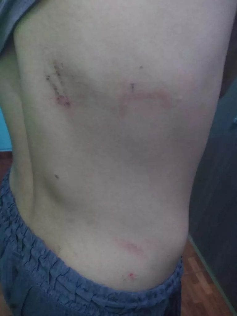 O “laudo”, feito em um papel que parece de receita do hospital, aponta que o garoto teve hematomas nas costas.
