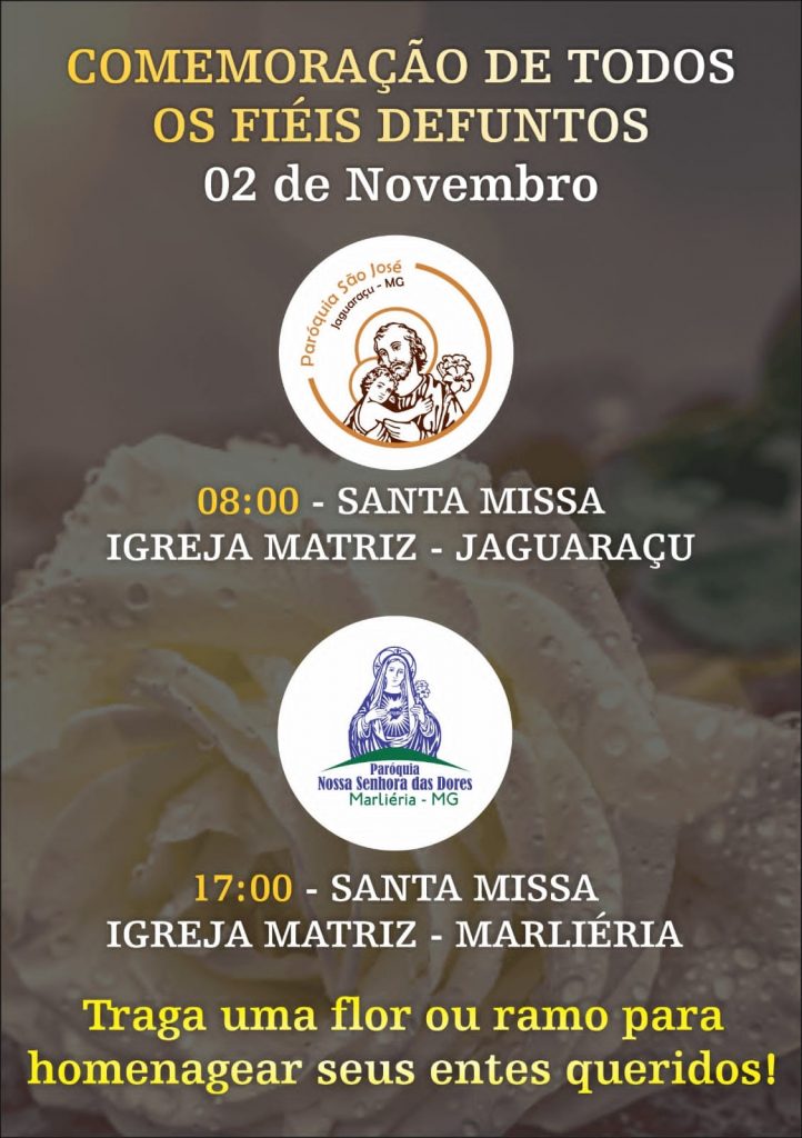 Conforme informou ao JVN, Padre Márcio Rodrigo Mota da Paróquia São José , que devida as intensas chuvas em Jaguaraçu, não haverá celebração no cemitério, apenas missa as 08:00 horas na Igreja Matriz São José.